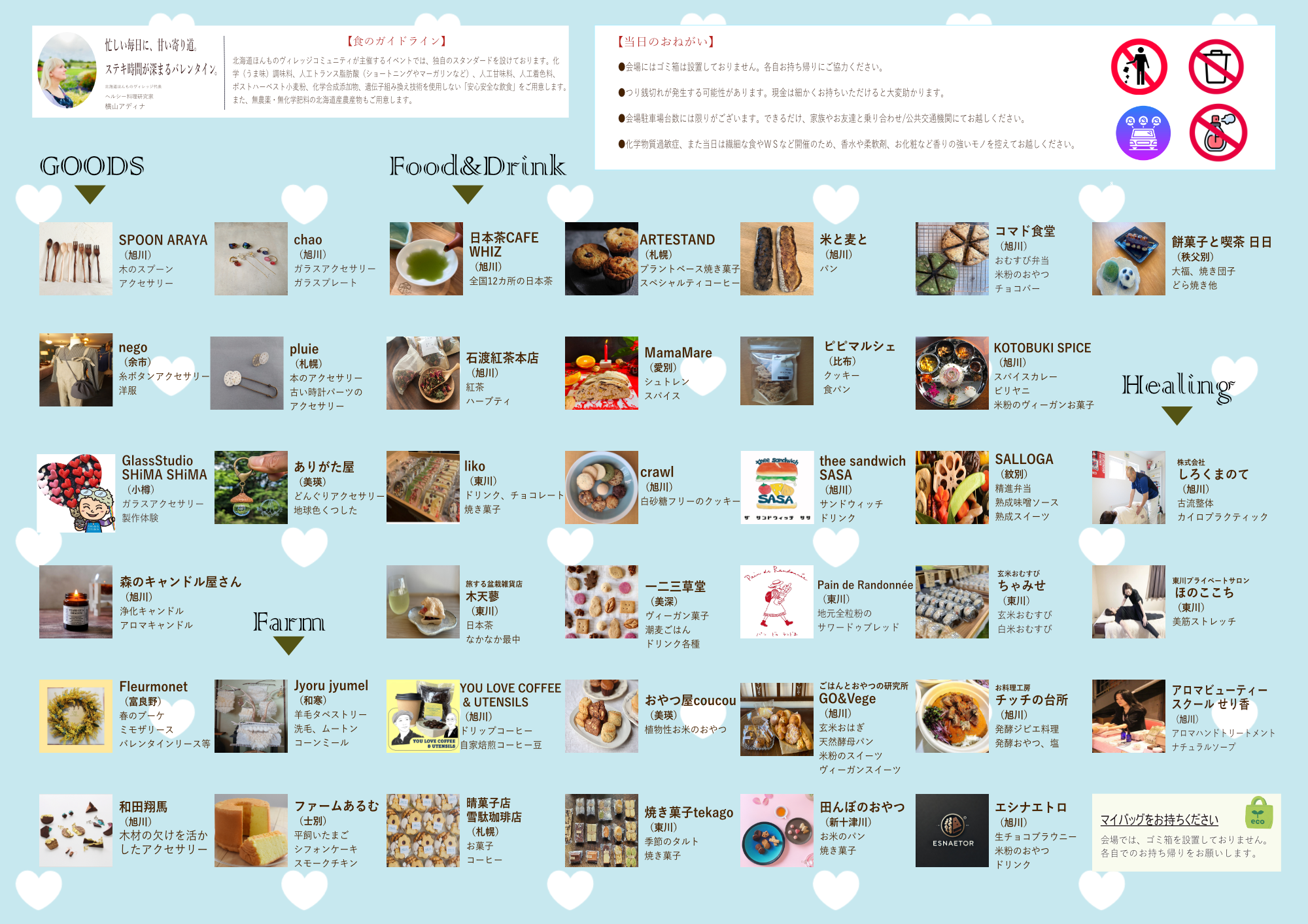 協賛 SPOON ARAYA、ピリカ(株)、株式会社しろくまのて、餅菓子と喫茶 日日、chao、ARTESTAND、米と麦と、crawlコマド食堂、Jyoru jyumell、YOU LOVE COFFEE & UTENSILS 、ファームあるむ、GlassStudio SHiMA・SHiMA、日本茶CAFE WHIZ